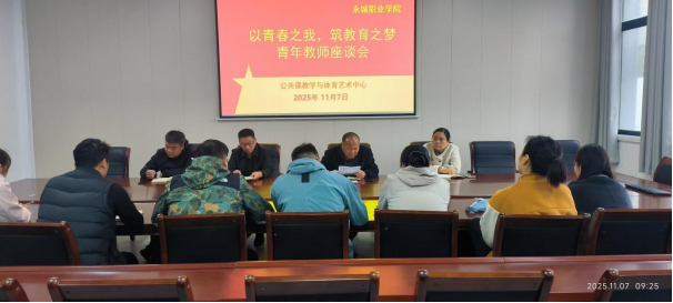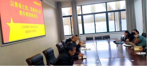 为深入了解青年教师的发展需求,激发青年教师队伍活力,全面提升公共基础教育的育人实效,共筑育人共同体,公共课教学与体育艺术中心于2025年11月7日在B402会议室召开了“以青春之我,筑教育之梦”为主题的青年教师座谈会。会议由公共课教学与体育艺术中心主任侯付禄主持。中心支部书记蒋文化、副主任郑艳等相关负责同志一同参会。
