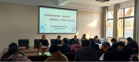 为深入探索高职人才培养的创新路径,践行“知识融合、能力复合”的现代教育理念,2025年11月11日下午,公共课教学与体育艺术中心在B402会议室举办了主题为“公共课与专业课的融通互嵌”的集体教研观摩活动。活动由中心主任侯付禄主持,旨在推动公共基础课与专业课的协同育人,构建全方位的“育人共同体”。