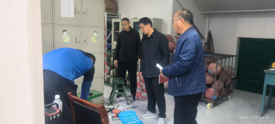 检查工作严格依据学校制定的《安全检查表》执行,聚焦各区域的安全核心,以实际行动落实“三零”创建中的“零事故”目标。在办公室区域,检查组重点查看了消防设施是否完备有效、用电是否规范、环境是否存在安全隐患,确保为教师提供一个安心无忧的办公环境,从源头防范安全风险。在器材室,检查组细致检查了体育器材的存放是否规范稳固、消防通道是否畅通,并对可能存在的化学品管理进行了严格核查,杜绝因管理疏忽引发的安全事故。针对师生使用频率最高的运动场,检查组对跑道、球场面层、各类固定器械(如篮球架、足球门、健身器材等)进行了逐一勘查,确保场地平整、器械稳固、防护到位,全力保障体育教学与课外活动的安全开展,切实维护师生人身安全,助力“零案件”实现。